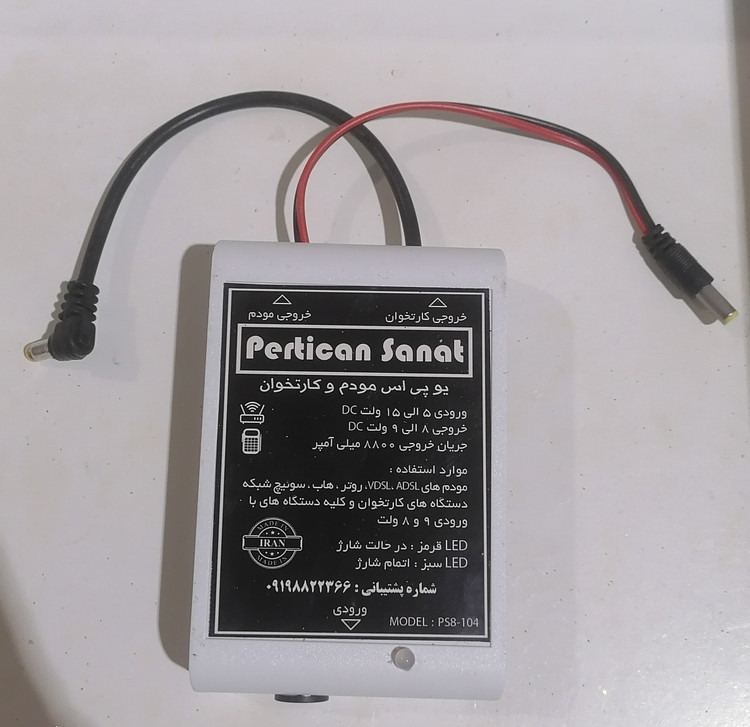 این دستگاه مدل PS8-104 میباشد. ظرفیت آن 4400 میلی آمپر و دارای دو خروجی میباشد که یک فیش خروجی آن مخصوص دستگاههای کارتخوان و دیگری مختص به مودم و سایر دستگاههای با ولتاژ 8 الی 9 ولت، میباشد که هنگام قطعی برق میتوانید از آنها استفاده نمایید