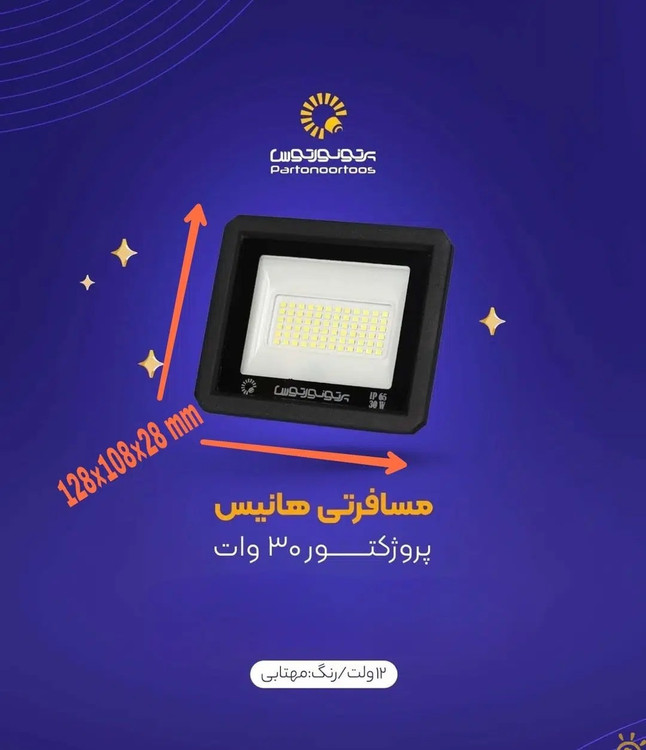 پروژکتور 30 وات 12 ولت هانیس انتخاب شایسته ای برای تامین روشنایی در مسافرت ها و کمپهای خارج از شهر میباشد.