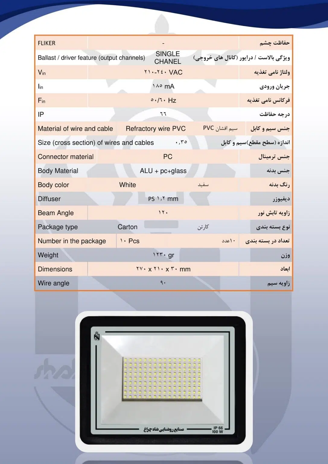 پروژکتور ال ای دی 100 وات شاهچراغ از سری محصولات شاهچراغ پارسیان و یکی از مرقون به صرفه ترین پروژکتورهای موجود در بازار میباشد.